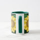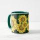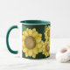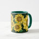 Yellow folk art flowers on a dark green background on this colorful mug design - makes your morning coffee taste twice as good!