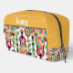 This vibrant pouch features a joyful folk-art garden scene mixed with colourful patchwork blocks in warm mustard, teal, red and navy. Stylised figures, flowers and leaves create a playful storytelling feel, while the editable name area adds a personalised touch. Perfect for anyone who loves bright artistic patterns, creative accessories and charming modern-folk aesthetics.