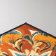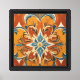 Bring the warmth of a Mediterranean summer into your space with this vibrant mandala tile design. Featuring a radiating pattern of sun-drenched orange, terracotta, and cool teal blue, this artwork mimics the style of traditional Majolica or Spanish ceramic tiles. Perfect for adding a boho, sunny vibe to your kitchen, patio, or living room.