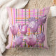 Sunny Pink Tulips Checkered Pattern Throw Pillow