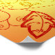 This poster print in sunny colors of an original drawing shows a Pomeranian dog surrounded by idealized flowers and leaves. I like to think of my pets resting in a perfect place when they pass on, which is what made me create this piece, based on henna mehndi patterns.