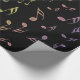 Sunny Rainbow Musical Notes Wrapping Paper. Colorful music notes in blue, green, purple, pink, gold and shades in between cascading down a black page. A festive musical touch for the holidays or any special occasion, especially when wrapping for your favorite musician. #music #musician #notes #wrapping #holidays