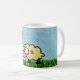 Funny little yellow sheep with a pink face, standing out in a field of dandelions on a bright and sunny day. Original digital cartoon art by Taylor Addams. Ewe gonna love it!