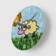 Funny little yellow sheep with a pink face, standing out in a field of dandelions, on a bright and sunny day. Original digital cartoon art by Taylor Addams. Great clock for a child's bedroom. Ewe gonna love it!
