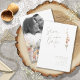 This chic wedding suite with it's warm sunny color palette, handwritten script font and delicate wildflower arrangements has a timeless and sophisticated look that will impress your guests and help make your special day unforgettable. The striking wedding Save the Date card, shown here on white with airy wildflower borders. provides a template to easily add your own photo and wedding details. Search ID1023 to see all the products in this wedding suite.