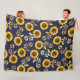 Sunny Yellow Gold Navy Sunflowers Leaves Pattern Fleece Blanket