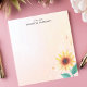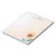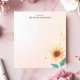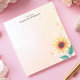 Brighten your day with this cheerful, personalized notepad! A vibrant yellow sunflower with detailed green leaves graces the lower-right corner, set against a soft, pastel background. The design evokes a sense of warmth and sunshine. Customize this notepad with your own text. Perfect for jotting down notes, to-do lists, or sharing a sunny message.