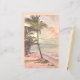 This is a lovely vintage style beach scene with sunrise shades of coral and green palm trees. There is a sample name holding the place for you to add your own. The back is a matching shade of pale coral pink. #tropical #paradise #palmtree #beach #ocean #sunrise #personalized #writingpaper