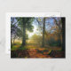 Sunrise in autumn forest - sun beams light up a forest clearing in autumn