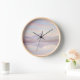 Elegant wall clock with a calm mountain sunrise in soft pastel tones. A dreamy and peaceful timepiece for natural home decor