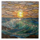 Sunrise Ocean Waves Stained Glass Illusion Ceramic Tile