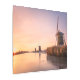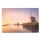 Photo on metal print of a landscape with a row of three traditional windmills and reeds along a frozen river during a colorful sunrise in winter in Leidschendam in the Netherlands.
