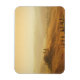 Rectangular souvenir photo magnet of a sunrise over the famous Podere il Belvedere villa in a landscape with barren, rolling hills in the Val d'Orcia in Tuscany, Italy.