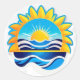 Sunrise Over Ocean Waves Emblem Classic Round Sticker