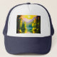 Sunrise over snow covered mountains and lake trucker hat