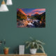 This photo features a colorful sunrise over the rapids of Swiftcurrent Creek in Glacier National Park, Montana.