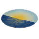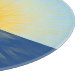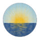 This vibrant graphic design features a glowing sun in radiant shades of yellow rising above the blue ocean, where broken waves reflect the light in a dynamic, imperfectly beautiful way. The simple geometric shapes and curves create a modern yet deeply meaningful image of morning at the beach, symbolizing hope, renewal, and the promise of new beginnings.