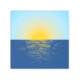 This vibrant graphic design features a glowing sun in radiant shades of yellow rising above the blue ocean, where broken waves reflect the light in a dynamic, imperfectly beautiful way. The simple geometric shapes and curves create a modern yet deeply meaningful image of morning at the beach, symbolizing hope, renewal, and the promise of new beginnings.