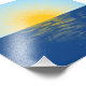 This graphic design shows a sun in varying shades of yellow rising over the blue ocean. The broken waves reflect the sun's light and image in different ways and to different degrees. In designing this simple polygon art I wanted to express how our lives are transformed by Jesus and that our dark waters become glowing (imperfect) reflections of Christ as we grow spiritually. The broken waters show how God makes a beautiful pictures from our broken pieces. It is a simple blue and yellow combination made of various geometric shapes and curves that all fit together in an inspirational picture of morning on the beach that is perfect for new beginnings.