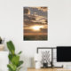 Scenic vertical landscape of a dramatic morning sunrise sky, with clouds, and the sunshine peering through cloud cover with an early orange and blue sky over the ocean waves. Bright sunlight with rays of light beam through. Image taken in Miami Beach, Florida All Designs Copyright © 2013 www.CuteComfy.com