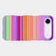 Pattern of multi-colored pink, purple, orange, blue vibrant stripes in happy sunset colors.