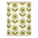 A clean, symmetrical pattern featuring stylized yellow-green flowers with circular petals, twin leaves, and vertical stems topped with buds. Arranged in a rhythmic grid on a soft beige background, the design evokes mid-century textile charm with its bold shapes and balanced composition.flower pattern, retro floral, mcm floral pattern, vintage textile, botanical grid, yellow green palette, decorative art, spring decor, minimalist bloom, mid century modern floral pattern,