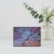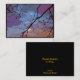 This lovely fine art artist trading card displays an abstract pattern of black branches against a sunset sky with rainbow colors of purple, blue, white, pink, orange, gray and magenta.