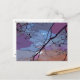 This lovely fine art postcard displays an abstract pattern of black branches against a sunset sky with rainbow colors of purple, blue, white, pink, orange, gray and magenta.