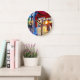 This clock features a sunset viewed through the lifebuoy on a sailboat. This is one of many San Juan Islands in Washington State, and it's a haven for boaters with lots of family farms offering fresh and organic food. Sunsets are great anywhere, but there's something special about a sunset when viewed from an island harbor. Different shapes, sizes, and hand colors are available.