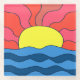 Bold pop art depiction of sunset on the shore