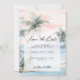 A beautiful watercolour design of the beach at sunset with palm trees and pink skies save the date card, with a co-ordinating reverse side. Easy to edit or delete the available text fields to personalize the information with your own details. Matching invitations and many other items in this tropical beach themed collection. Please visit my shop to see the full range or contact me if you need something with this design that is not currently listed.