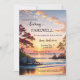 Celebration of life, memorial or funeral service invitation featuring an image of a sunset on the beach. On the back you can replace the image with your custom photo or delete it.
