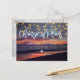 Elegant sunset beach string lights summer wedding change of plans announcement postcard. Text and photo can be changed using right the "Details" menu. To fit everything to your needs please click the "Customize" button and you can text style and color change. Other colors are available. Please contact me if you need help, for matching items or you have special wishes.
