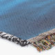 A quality printed throw has its advantages. This is a much finer weave throw than its loopier cousins, and though lighter, it is worth the investment for custom room accessorizing. The back is much prettier than the typical brown, and the fringe on the long sides very vivid, the selvage nicely done. Before photographing, I washed the throw in cold water, delicate, with a thicker woven throw the same size. On tumble dry low, this throw was dry in half the time as the other. This is a very practical quality if you use throws for furniture covers or to wrap up in frequently. The sleekness of the fabric makes it a great layer for accenting or protecting without the feeling of sitting on too much stuff. Perfect for napping or when you feel a light chill coming on. The color printing is beautiful and on this fabric, matched the design and color of my Photoshop image. This is an advantage for blending room fabrics and colors. The fringe on the short sides prints the colors from the design image and therefore varies from the side fringe. I streaked a white fractal line through the plaid pattern to give the illusion of weaving. This printed as crisp as an illusory thread, and put some white in the short side fringe, showing another advantage of print vs loomed- for artistic purposes, line lines, detail, and color integrity can be planned and preserved. My loomed throws have color limitations and more of a needlepoint texture. Print throws reproduce an exact image. The throw felt a little stiff straight out of the package, but this went away in the first delicate wash. Of course I searched the wash water for ink or bleeding and there was none.