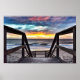 Stunning vivid sunset sky over beach and ocean taken from an old wood deck.