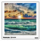 A digital art design of a beach at sunset with turquoise waves breaking on the shore. A peaceful, uplifting design to add a splash of color to your personal space.