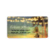 romantic sunset beach wedding address labels with string lights hanging on the palm trees.