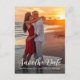 Sunset Beach White Script Save the Date Photo Announcement Postcard