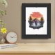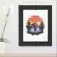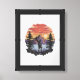 Sunset behind trees and mountains framed art