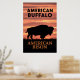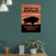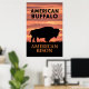 A silhouette of an American buffalo bison standing against a vibrant orange sunset.