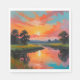 Experience the tranquil beauty of a vibrant sunset reflecting on a serene river. This artwork captures nature's harmony with radiant skies and peaceful waters.