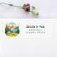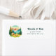This lively watercolor AI depiction of a campsite, set against the backdrop of mountains during a sunset, features a crackling fire and a glamorous tent nestled among pine trees, capturing the true essence of natural beauty. Its ideal for embellishing labels for weddings, bridal showers, special occasions, or everyday mailings.