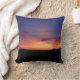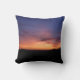 A bold sunset scene with blue/orange sky and black silhouette landscape. This throw pillow / cushion has the same photo design on the reverse side.
