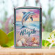 A vibrant dolphin leaping through pastel sunset waves, framed by scattered seashells along the shore, paired with a customizable name for a bright, beach‑ready design. Perfect for ocean lovers and summer‑themed gifts.