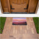 A digital art design of a sunset with clouds and colour reflecting on the sea and seashore on the coast of Wales.
