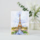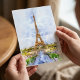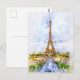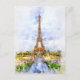Sunset Eiffel Tower Paris French Watercolor Postcard