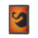 Image printed on trifold wallet is from a photo of an original crocheted creation designed handmade and Copyright © by published designer Delores Chamblin. The picture of the unique handcrafted creation with black swan silhouette is reproduced on the billfold. The bright orange is digital filter.