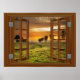 Sunset Farm USA 🍂 Fake Window Frame Poster