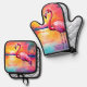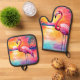 Sunset Flamingo Art Design Oven Mitt & Pot Holder Set
