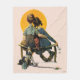 Artist: Norman Rockwell | Boy & girl watch sunset from bench, forlorn puppy